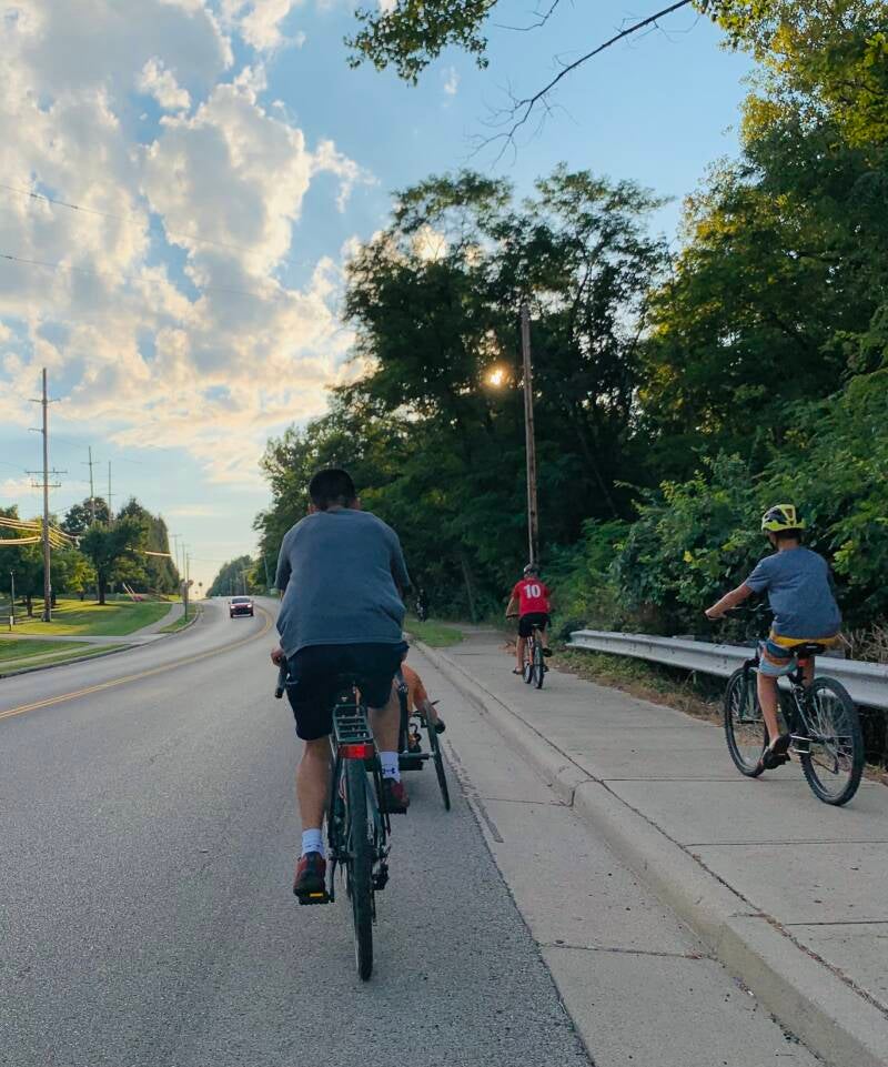 This happened yesterday for the very first time. Several bike boys joined us at the tiny part of our route. Surely my husband's handcycle caught their eyes. It's always fun to watch their responses.