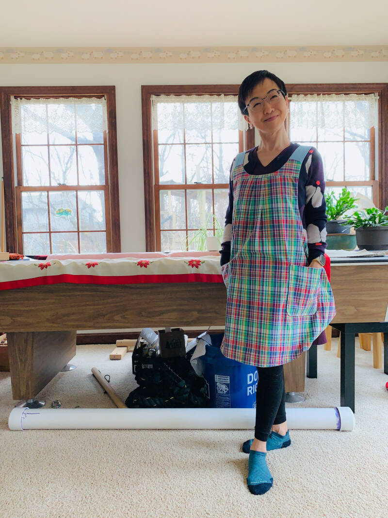 I got a handmade apron from one of them. (Yes, they were mother and daughter. I asked them many questions about their life.) You would love this apron because she made it from old dress shirts fabrics. Plus it's reversible!!! I love colors, designs and her ideas all. I was so excited about it, I even made my son curious about it as well. Isn't it lovely and very practical? Love it!