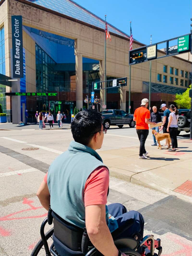 My husband had been preparing for the Flying Pig 10K handcycle race which was the very first pilot program for handcyclers this year. Since it was the very new program, both Organizer side and participants side had some uncertainty about the race day. We had a 10 min staggered start at 7:00am then regular 10K runners started at 7:10am at the same start line. We were given special parking spaces which was closed for public near the start line. Because handcycle athletes needed to get on their own handcycles from their wheelchair. We were told the access way and the direction to the lot beforehand. It seemed all set and looked good to go.