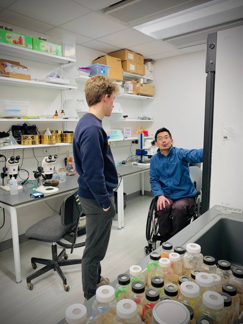 When a young college boy seems to be interested in "biology field", my husband would love to give a lab tour to show everything related to his research. It's always fun to watch their interactions. Plus wandering around Pearson Hall is fun as well.