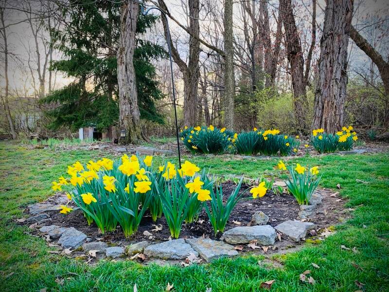 Before we were off to Chicago 5 days ago, there was just one blooming of Daffodil in my front yard. When we arrived home from a long driving, vivid yellow color caught my eye and made me smile huge. They welcomed us very cheerfully. Spring is so good to get going! How are your early bloomers doing??