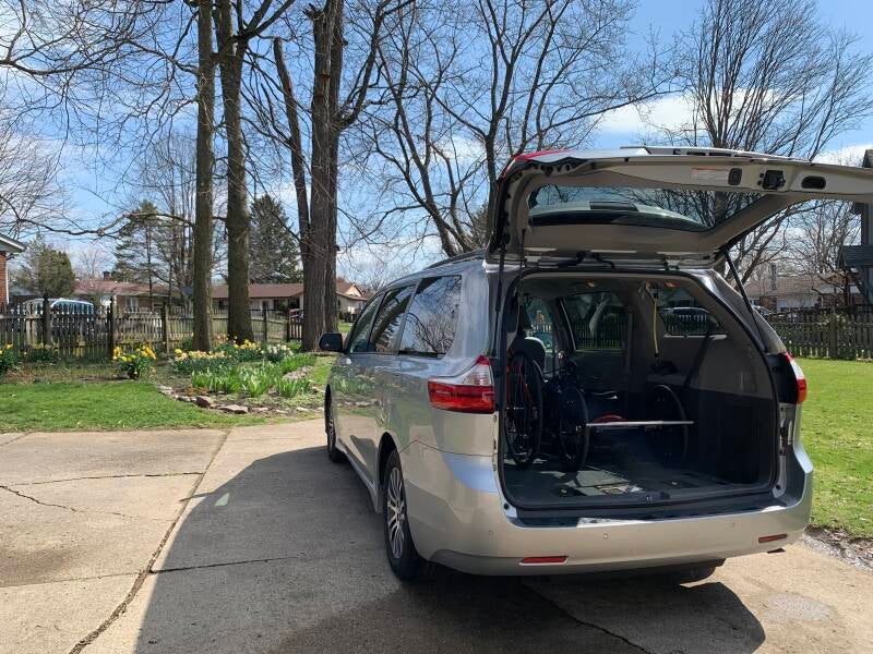 During the visit of my husband's parents and his niece from Japan, we didn't have much "hot" days. Their last day was warm enough to feel "the spring". My yards got more colors of daffodils after they left. It feels like that they left me a special treat behind. Thinking of them a lot. I put middle seats back in the minivan (Siena 2019) for them. And now I took them out again for a handcycle and a bicycle. Yes, it's the time for handcycle training!! (Well, we need to "play" with the weather-god, you know? April shower is surely coming, isn't it?)